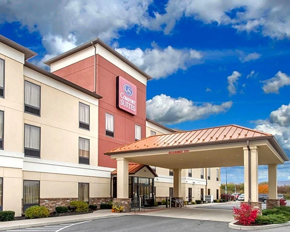 Located 10 miles from the Convention Center, The Comfort Suites – Altoona has a beautiful mountain view and has many amenities to make your stay comfortable; Complimentary full hot breakfast, indoor heated pool, fitness center, business center, free Wifi, sundry shop, guest laundry and outdoor picnic area. All of our rooms are suites that include a pillow-top mattress, a pull-out sofa, fridge, microwave, Keurig, desk and 40’’ TV’s. Marzoni’s Brick Oven & Brewery is located 1.7 miles down the road. Need a meeting room for large gatherings? We have them, too. Our Comfort Suites team looks forward to serving you in the near future.